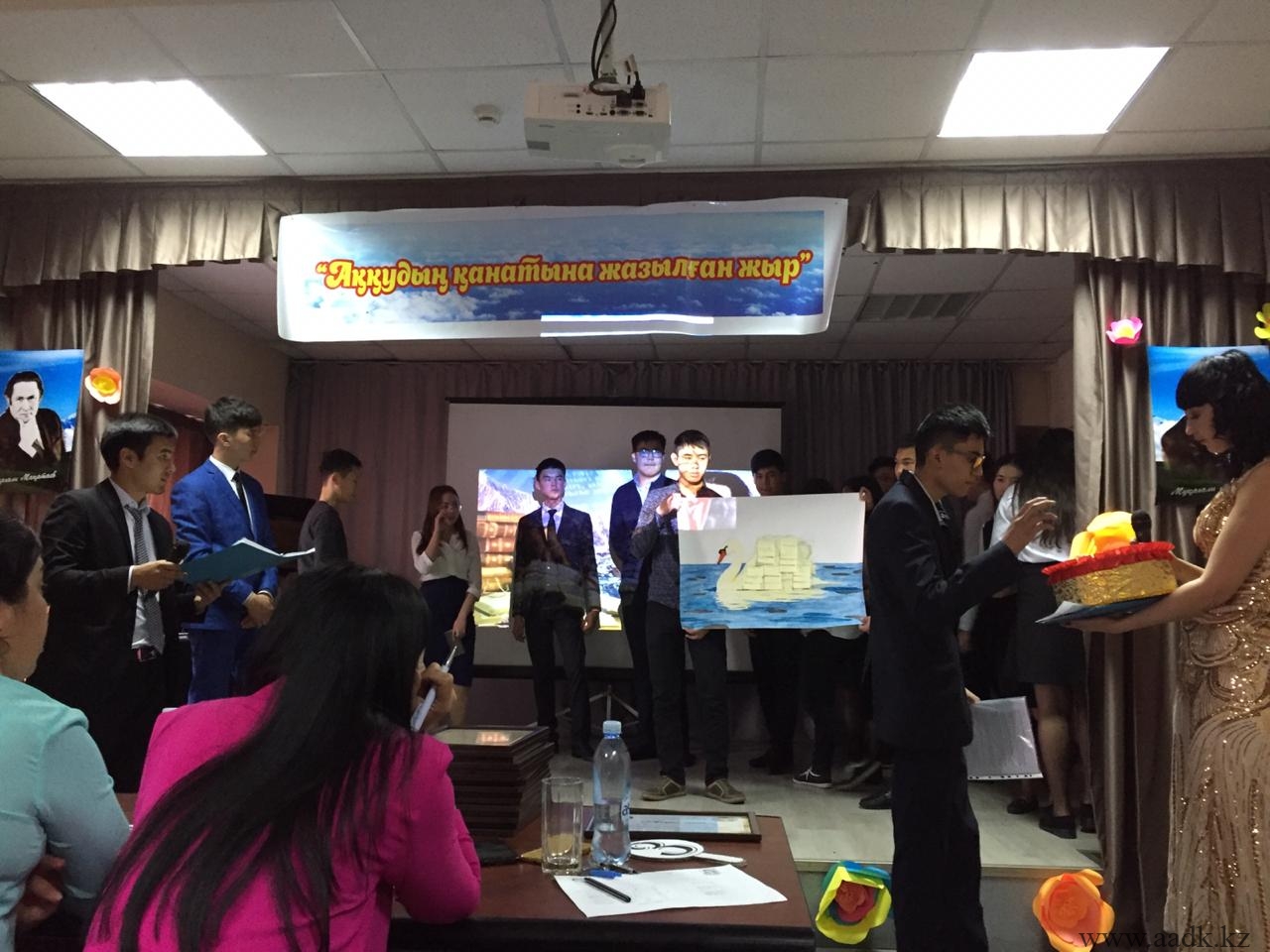 27.03.2019 жылы колледжде ақиық ақын Мұқағали Мақатаевтың туғанына 88 жыл толуына орай қазақ тілі мен әдебиеті пәндерінің оқытушылары Аянбекова Н.И. мен Тохтахунова Р.М. ұйымдастыруымен «Аққудың қанатына жазылған жыр» атты жыр мүшайрасы өтті. Мүшайраға жүректерін жауқазын жыр тербеген 15 оқушы қатысты. Мүшайра қонағы, «Аманат» фильмінде басты рөлдердің бірін сомдаған Нұртаев Азат Райымбекұлы әділқазылар алқасының құрамында төрағалық етті. Мүшайраның «Хантәңірінің мұзбалағы» кезеңінде жас дарындар Мұқағали Мақатаевтың өмір жолын қазақ, орыс және ағылшын тілдерінде айтып шықты. «Жырлайды жүрек» кезеңінде ақынның өлең жолдары мен поэмаларын жатқа оқыды. «Сыр сандық» кезеңінде «Ғасыр ақынының» өмір жолы, отбасы туралы сұрақтар қойылып, тың деректерге толы жауаптар айтылды. Шара барысында топтан оза шауып, дараланып көрінген талаптылар аз болмады. Олар жыр додасында өздерінің Мұқағали мұрасын көп білетіндіктерін көрсетті. Сонымен қатар, Республикалық байқауларда «Көркем сөз» номинациясы бойынша екі дүркін бас жүлдені иеленген, әділқасы алқасының мүшесі болған Қаржау Ермұхан өзінің төл туындысын тарту етті. Сонымен жас ақындар сайысы өз мәресіне жетті. Бас жүлдені САД-18-22К тобының 1 курс оқушысы жас дарын Совет Иманғали иеленді.