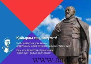 «Құрметті отандастар! Қадірменді әріптестер! Бүгін 10 тамыз əлемдік деңгейдегі ойшыл, ұлт руханиятының темірқазығы – Абай Құнанбайұлының туған күні. Халқымыз осы қуанышты күнді үлкен құрметпен қарсы алғалы тұр. Осылайша Хакім Абайға, ұлт мәдениетіне құрмет көрсетуді жалғастыра береміз
