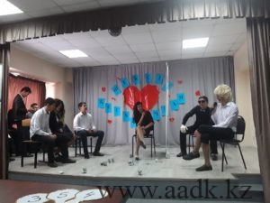 22.02.19 күні колледжімізде Жастар ісі жөніндегі комитет мүшелерінің ұйымдастыруымен «Жастар жылына» орай «Шексіз махаббат» тақырыбында көңілді тапқырлар ойыны өтті. Бұл сайысқа колледжіміздің әзілдері мен тапқырлықтары жарасқан 1-2 курс оқушылары қатысты. Жалпы махаббаттың түрі көп. Ол туған жерге, Отанға деген махаббат, ата-анаға деген махаббат, сонымен қатар қыз бен жігіттің махаббаты. Ал, біздің қатысушыларымыз қандай махаббатты таңдағандарын ойын барысында көрсете білді.Ойын өте тартысты өтті. Колледжіміздің қабырғасында өз Отанына деген құрметі мен сүйіспеншілігі жоғары оқушыларымыздың білім алып жатқаны көңіл қуантты. Сайыста «ААДК арландары» КВН командасының жетекшісі Намазбаева А.Д. төрағалық етті. Сонымен қатар, 2018 жылы Астана қаласында өткен «Жайдарман» ойындарының жоғарғы лигасында өнер көрсеткен, Тараз және Талдықорған қалаларында өткен аймақтық ойындарда жүлделі 2 орын иеленген «Жайдарлы жігіттер» командасының капитаны, Л.Б. Гончаров атындағы Қазақ автомобиль-жол академиясының студенті Жұмабай Алтынбек әділқазы алқасының құрамында болды. Бас жүлдені САД-18-22к тобының «Смешинка» командасы жеңіп алды. «Амаловтың балалары» және «Жас star» командаларының ойындары да көпшіліктің көңілдерінен шықты. Сайыста ерекше өнерімен көзге түскен ДМ-17-2 к тобының 2 курс оқушысы Берікұлы Мейрам «Үздік ойыншы» деп танылды. Қатысушыларымыздың алдағы уақыттарда үлкен сахналарда өнер көрсетулеріне тілектеспіз!