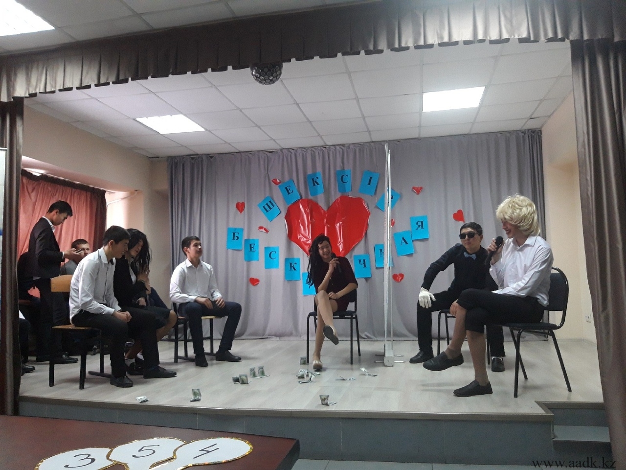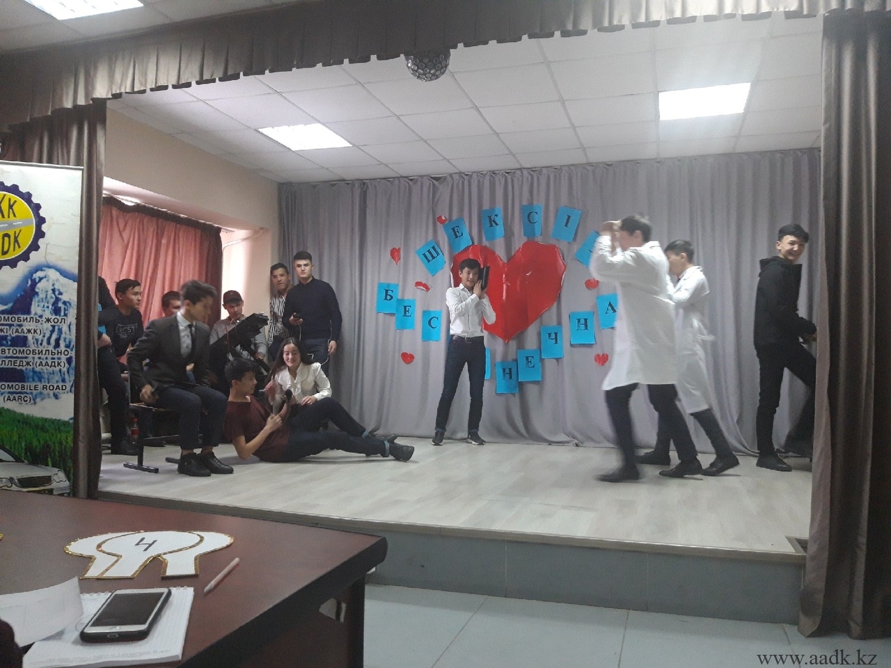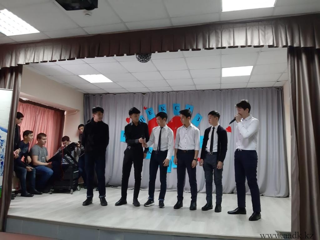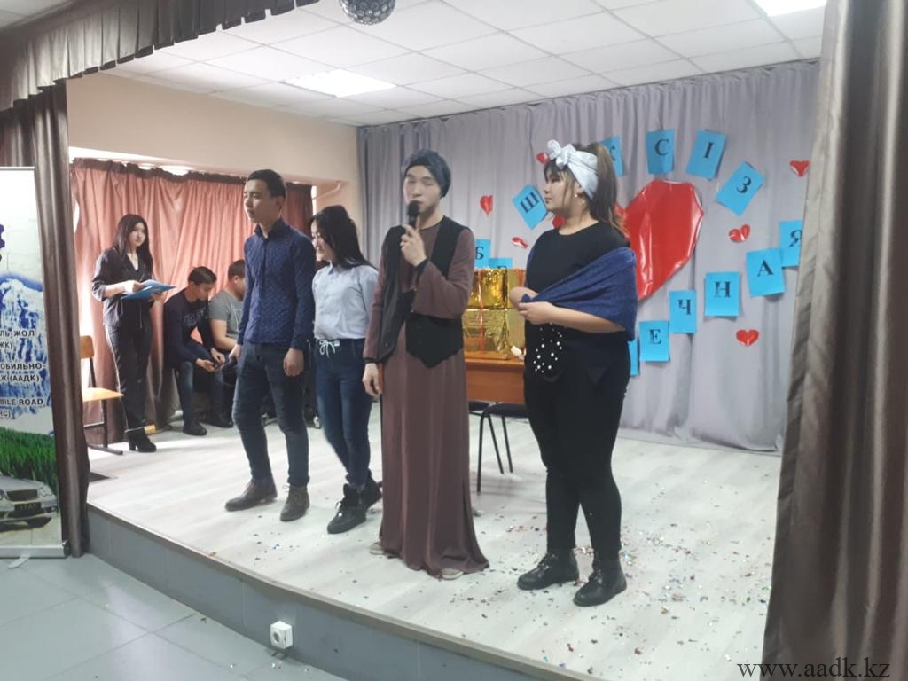 22.02.19 күні колледжімізде Жастар ісі жөніндегі комитет мүшелерінің ұйымдастыруымен «Жастар жылына» орай «Шексіз махаббат» тақырыбында көңілді тапқырлар ойыны өтті. Бұл сайысқа колледжіміздің әзілдері мен тапқырлықтары жарасқан 1-2 курс оқушылары қатысты. Жалпы махаббаттың түрі көп. Ол туған жерге, Отанға деген махаббат, ата-анаға деген махаббат, сонымен қатар қыз бен жігіттің махаббаты. Ал, біздің қатысушыларымыз қандай махаббатты таңдағандарын ойын барысында көрсете білді.Ойын өте тартысты өтті. Колледжіміздің қабырғасында өз Отанына деген құрметі мен сүйіспеншілігі жоғары оқушыларымыздың білім алып жатқаны көңіл қуантты. Сайыста «ААДК арландары» КВН командасының жетекшісі Намазбаева А.Д. төрағалық етті. Сонымен қатар, 2018 жылы Астана қаласында өткен «Жайдарман» ойындарының жоғарғы лигасында өнер көрсеткен, Тараз және Талдықорған қалаларында өткен аймақтық ойындарда жүлделі 2 орын иеленген «Жайдарлы жігіттер» командасының капитаны, Л.Б. Гончаров атындағы Қазақ автомобиль-жол академиясының студенті Жұмабай Алтынбек әділқазы алқасының құрамында болды. Бас жүлдені САД-18-22к тобының «Смешинка» командасы жеңіп алды. «Амаловтың балалары» және «Жас star» командаларының ойындары да көпшіліктің көңілдерінен шықты. Сайыста ерекше өнерімен көзге түскен ДМ-17-2 к тобының 2 курс оқушысы Берікұлы Мейрам «Үздік ойыншы» деп танылды. Қатысушыларымыздың алдағы уақыттарда үлкен сахналарда өнер көрсетулеріне тілектеспіз!