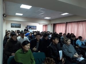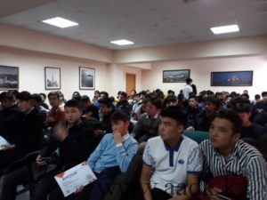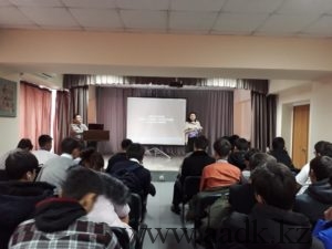 26 ноября 2018 года преподаватель культурологии Бейсембаева К.К. и учащиеся 1-го и 2-го курсов обсуждали видеоролик по профилактике экстремизма и терроризма.