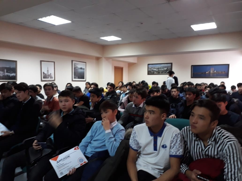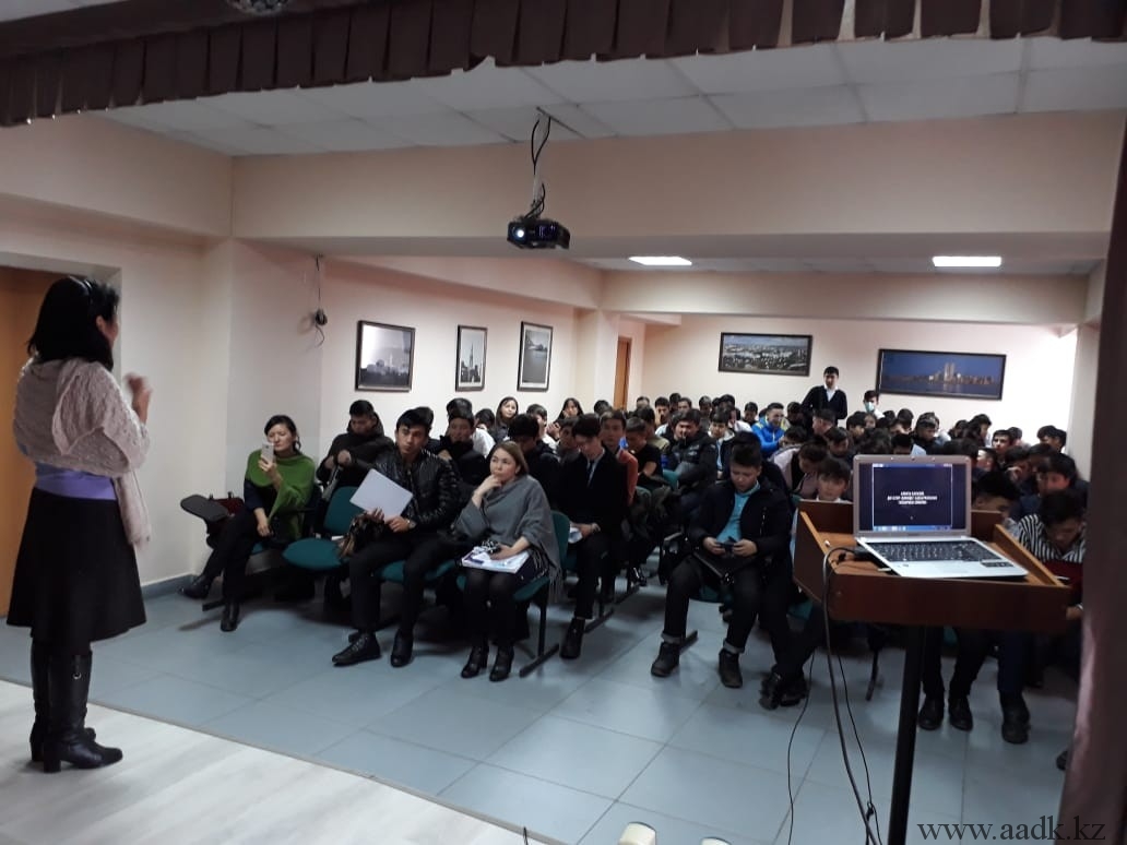 26 ноября 2018 года преподаватель культурологии Бейсембаева К.К. и учащиеся 1-го и 2-го курсов обсуждали видеоролик по профилактике экстремизма и терроризма.
