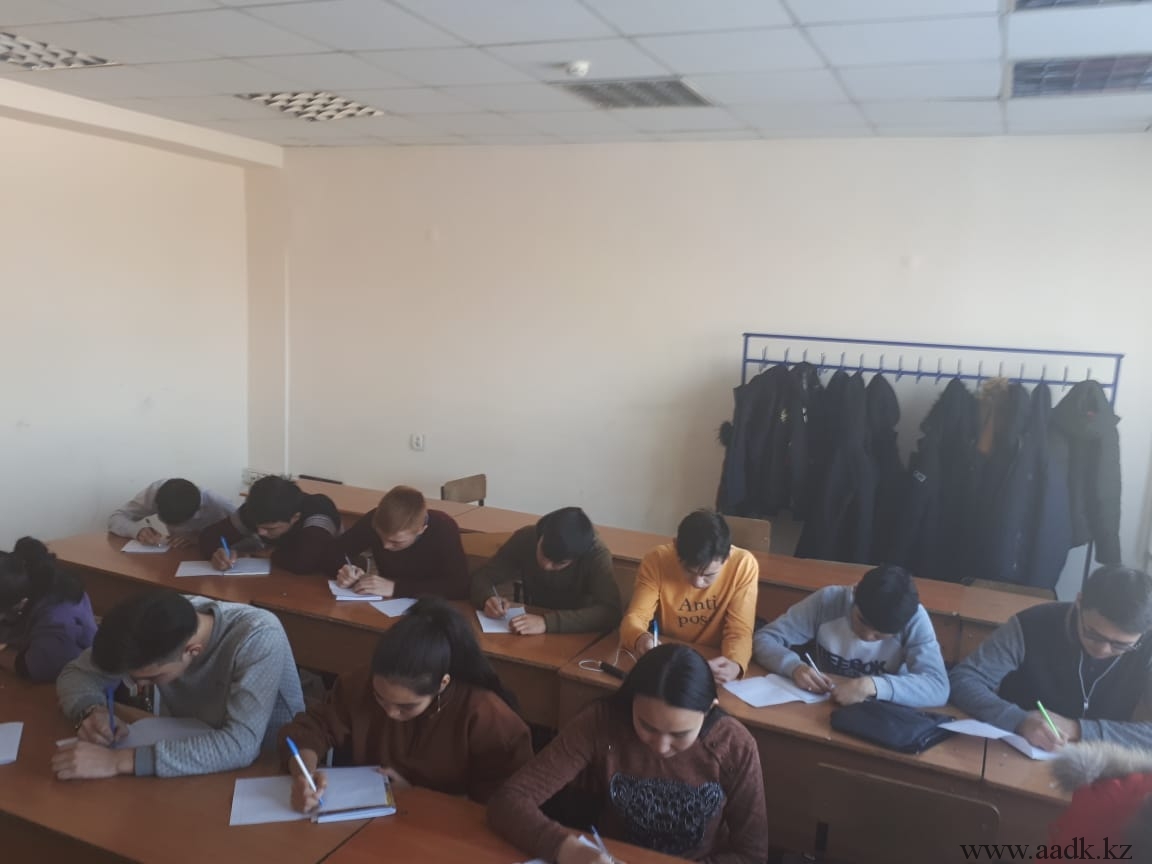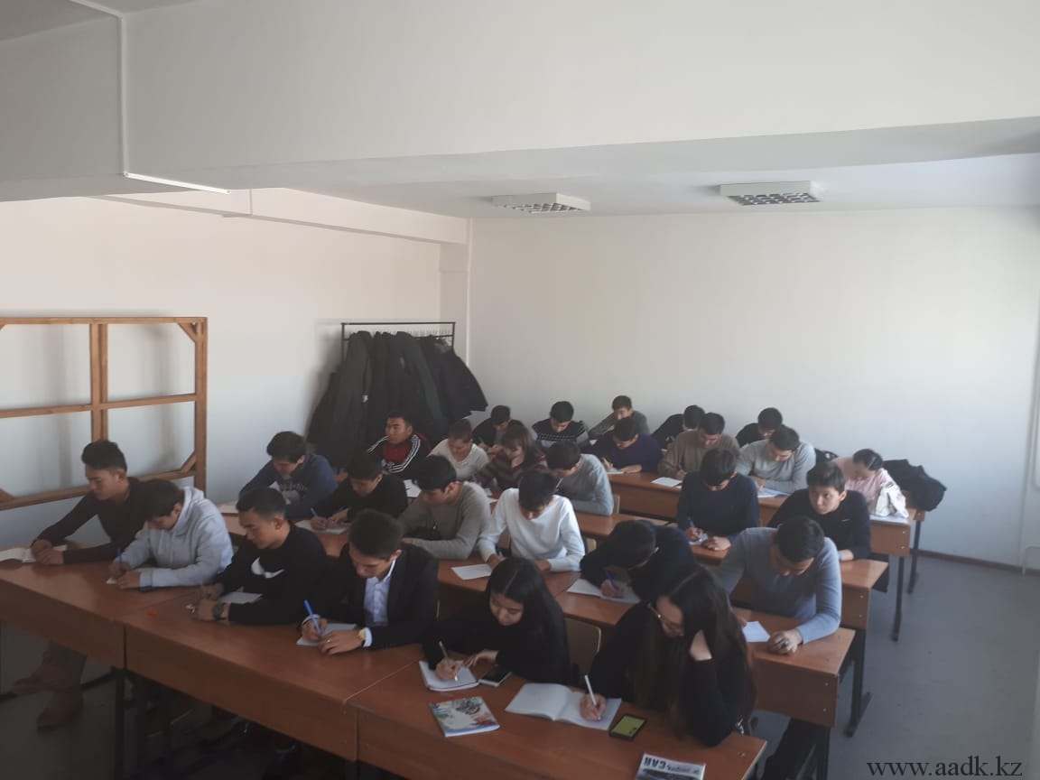 14.11.2018 г. в 11:00 часов учащихся Алматинского автомобильно-дорожного колледжа приняли участие в первом «Общенародном диктанте» на латинице. Акция была организована Министерством кулькуры и спорта Республики Казахстан. «Общереспубликанская акция направлена на популяризацию нового казахского алфавита и овладение практическими навыками письма на основе латинской графики,»-сообщил в Министерстве.