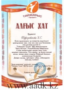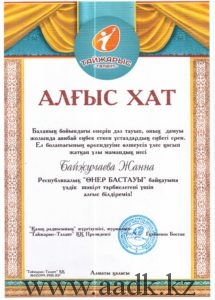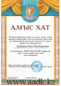 Админстрация Алматинского автомобильно-дорожного колледжа поздравляет учащегося группы ОП-17-21К Ермұхан Қаржау, занявшего Гранпри в республиканском конкурсе «Өнер бастауы» . Руководителем учящегося была преподаватель казахского языка и литературы Байжумаева Жанна Куандыковна. Ей было вручено благодарственное письмо за то, что она открыла в своем ученике творческий талант и помогла в развитии его способностей. Так же от АО «Тайжарыс-Талант» были вручены благодарственные письма руководителям колледжа Кабашевой Розе Молдахановне, Турсумбековой Хорлан Сакеновне.