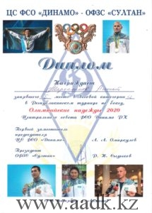 Учащийся группы САД-18-22К Хамитов Даурен, занявшего 1 место в весовой категории 73 кг в областном турнире по «Қазақ күресі» также наградили Грамотой за победу