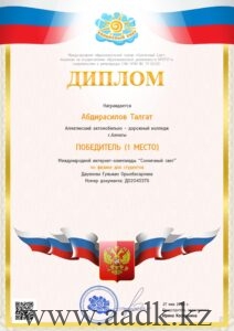 1. Баймуратов Атабек занял ІІ место по физике для студентов. Руководитель Дауенова Гульжан Орынбасаровна.
