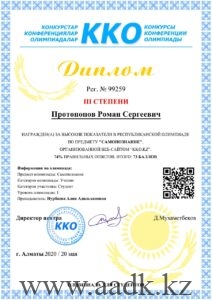 - Акылбеков Арман занял ІІІ место по предмету «Самопознание» под