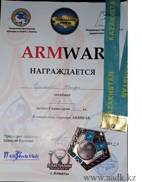 29 сентября 2019 года учащийся гр. САД-19-23К Қанатов Жандос занял 3-е место по армрестлингу в весовой категории 60 кг. в открытом турнире ARMWAR. А так же 5 октября 2019 года в открытом турнире Азии «Open Asia armwrestling cuр» по армрестлингу занял 3-е место.