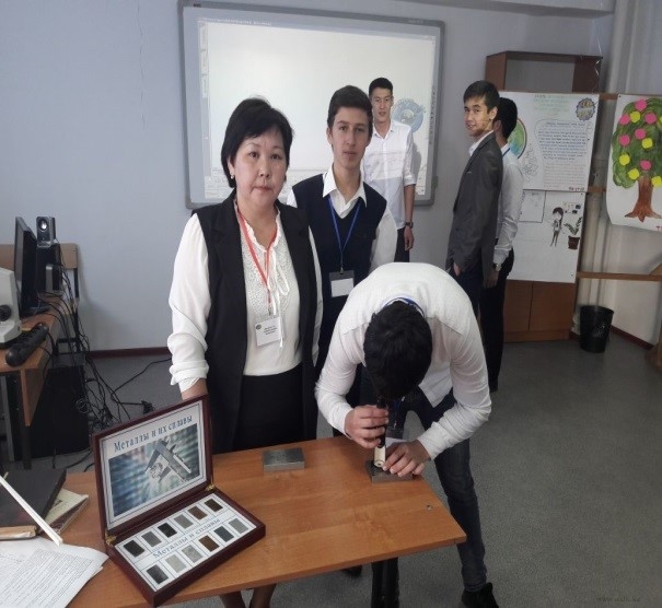 Оқушыларды ынтымақ бірлікке,тез ойлауға және белсенділікке дағдыландыру,теориялық білімдерін бір жүйеге келтіру. Оқушыларды өзіндік жұмыс істеуге баулу,ойлау және шығармашылық қабілеттерін дамыту,алған теориялық білімдерін іс-жүзінде қолдана білуге үйрету;жаңа компьютерлік технология әдістері арқылы оқушылардың сабаққа белсенділігін арттыру.Туған жер қойнауының байлықтары(металдар) туралы оқушылардың білімін кеңейтіп,аялауға тәрбиелеу.