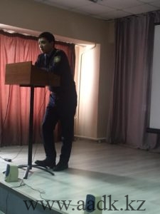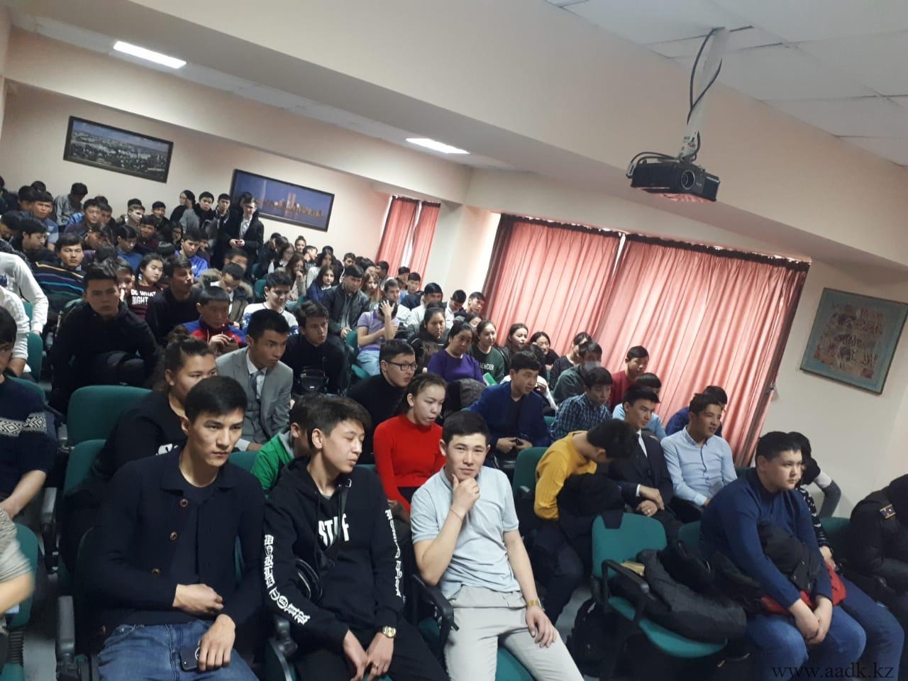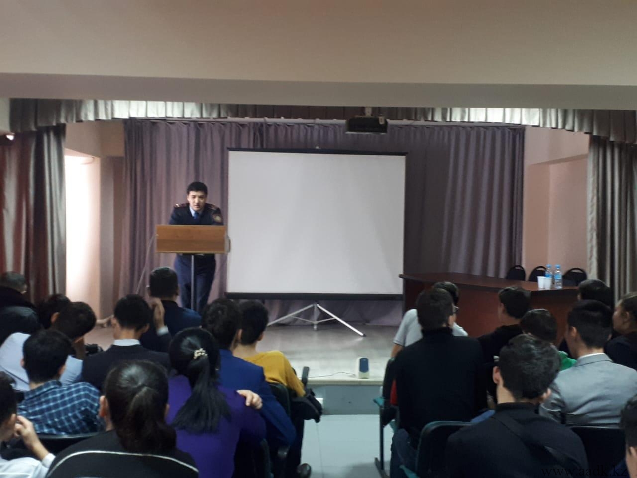 Кәмелеттік жасқа толмағандар арасындағы құқықбұзушылықтың алдын алу қоғамдағы қылмыстың алдын алудың аса маңызды аспектісі болып табылады. Тұлғаны жан-жақты үйлесімді тәрбиелеу саласының бірі – құқықтық тәрбие. Ол қоғамның әрбір азаматының мемлекеттік заңдарын аса жауапкершілікпен орындап отыруы талаптарымен тығыз байланысты. Әсіресе, оның елімізде жүріп жатқан жариялылық, құқықтық және зайырлы қоғам орнату процесімен байланысының маңызы ерекше. Ол үшін адамзаттың сан ғасыр уақыттар бойы жасап шығарған жалпы адамзаттық негіздегі моральдық нормаларын қоғамның әрбір өскелең жастарының сана- сезімімен, күнделікті мінез- құлықтарына қалыптастыру қажет. Бұл талапты іс жүзіне асыру, әсіресе елдің әлеуметтік-экономикалық жағдайын дамыту кезеңінде, ең бірінші кезекте құқықтық сананы тәрбиелеу мен мемлекеттік заңдарды жетілдіру процесінде жандандыру айрықша міндетті іс. Осы орайда, 21.02.2019 күні Алатау аудандық ішкі істер басқармасының кәмелеттік жасқа толмағандар ісі жөніндегі қызметкерері аға лейтенант А.Б. Бапанов пен аға лейтенант К.Б. Мейирмановтар «Темекі тартудың, нашақорлықтың және құқықбұзушылықтың алдын алу» тақырыбынба дәріс оқып, түсіндіру шараларын жүргізді. Әкімшілік жаза мен қылмыстық жаза түрлері туралы толық мәліметтер берді. Колледж оқушылары өзіне қажетті сұрақтар қойып, қанағаттанарлық жауап алды.