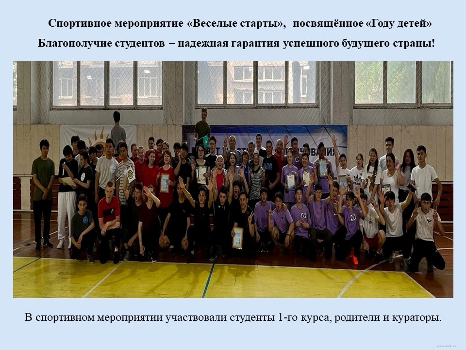 Соревнования проведены под руководством преподавателей физической культуры Коваленко А.Г., Неклюдов Г.О., Иманкулов М.М., Азубаев Ж.М., Чипотаева А.К.