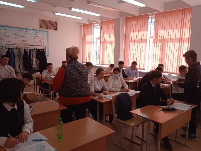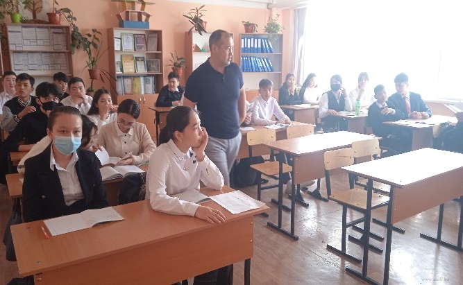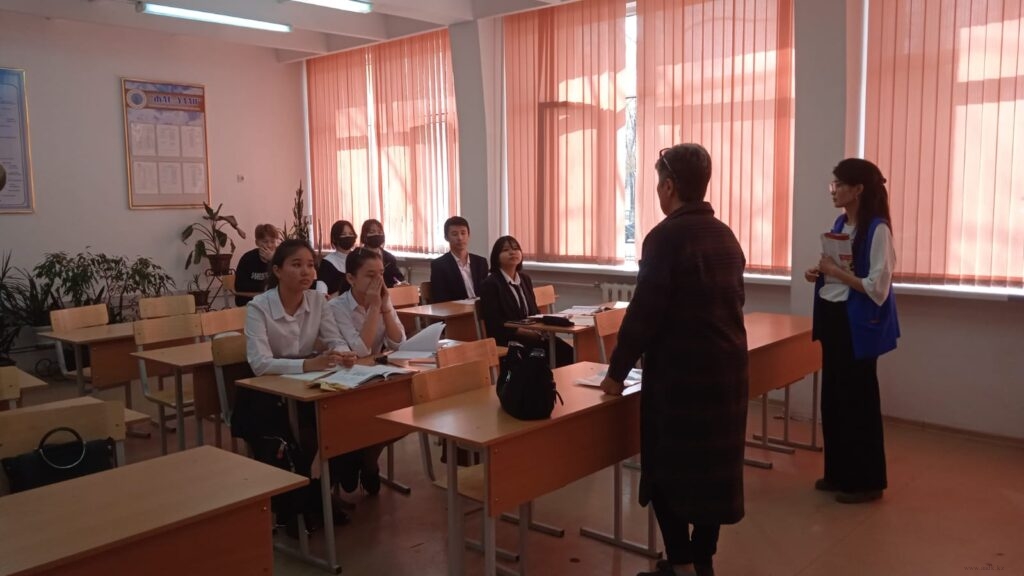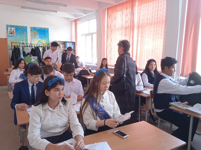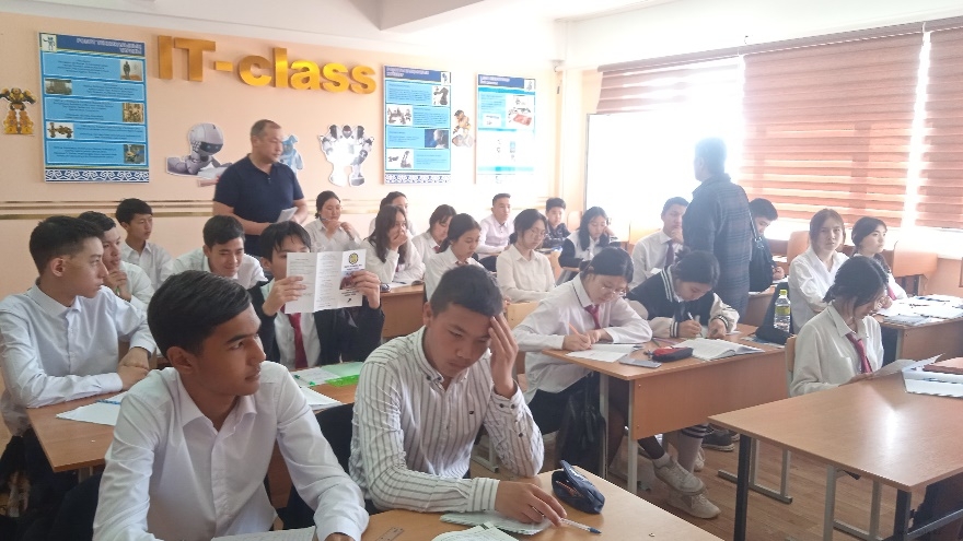 Преподаватели колледжа Азубаев Ж., Кистаубаева К.С., Чипотаева А.К. и Садыкова В.С. провели мероприятие с учениками 9-х классов. Выпускникам была предоставлена информация о специальностях и правилах поступления в институт. Было задано много вопросов, на которые дали исчерпывающие ответы.